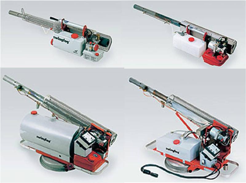 Os aparelhos de nebulização SWINGFOG funcionam com gasolina segundo o princípio SWINGFIRE. Na câmara de combustão incendeia-se uma mistura de gasolina/ar, que gera oscilações de escape entre 80 e 110 ciclos por segundo, consoante o modelo do aparelho. Ao final do tubo ressonador é injectada a preparação química que nebuliza a corrente de ar que sai a alta velocidade, pulverizando-se em finíssimas gotas de aerossol, formando uma névoa flutuante. O combustível e a preparação química são transportados por uma pressão positiva pequena nos depósitos.